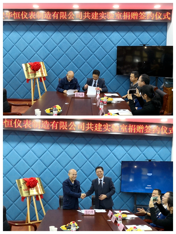 捐贈簽約儀式于2020年9月17日16:00在哈爾濱理工大學舉行,出席捐贈簽約儀式的有:西安華恒儀表制造有限公司總工周衛(wèi)東、顧問田皋林、技術(shù)總監(jiān)王志剛,測控技術(shù)與通信工程學院院長范劍英、書記顧大興、副院長楊明極、副院長吳海濱、副書記田海燕、實驗中心主任羅中明、測控技術(shù)儀器系主任蓋建新、實驗中心副主任陳寶遠和學生代表。捐贈簽約儀式由副院長楊明極主持,西安華恒儀表制造有限公司總工周衛(wèi)東和測通學院院長范劍英分別進行了講話,最后學院領(lǐng)導陪同西安華恒儀表制造有限公司貴賓參觀了學院國家級實驗教學示范中心。